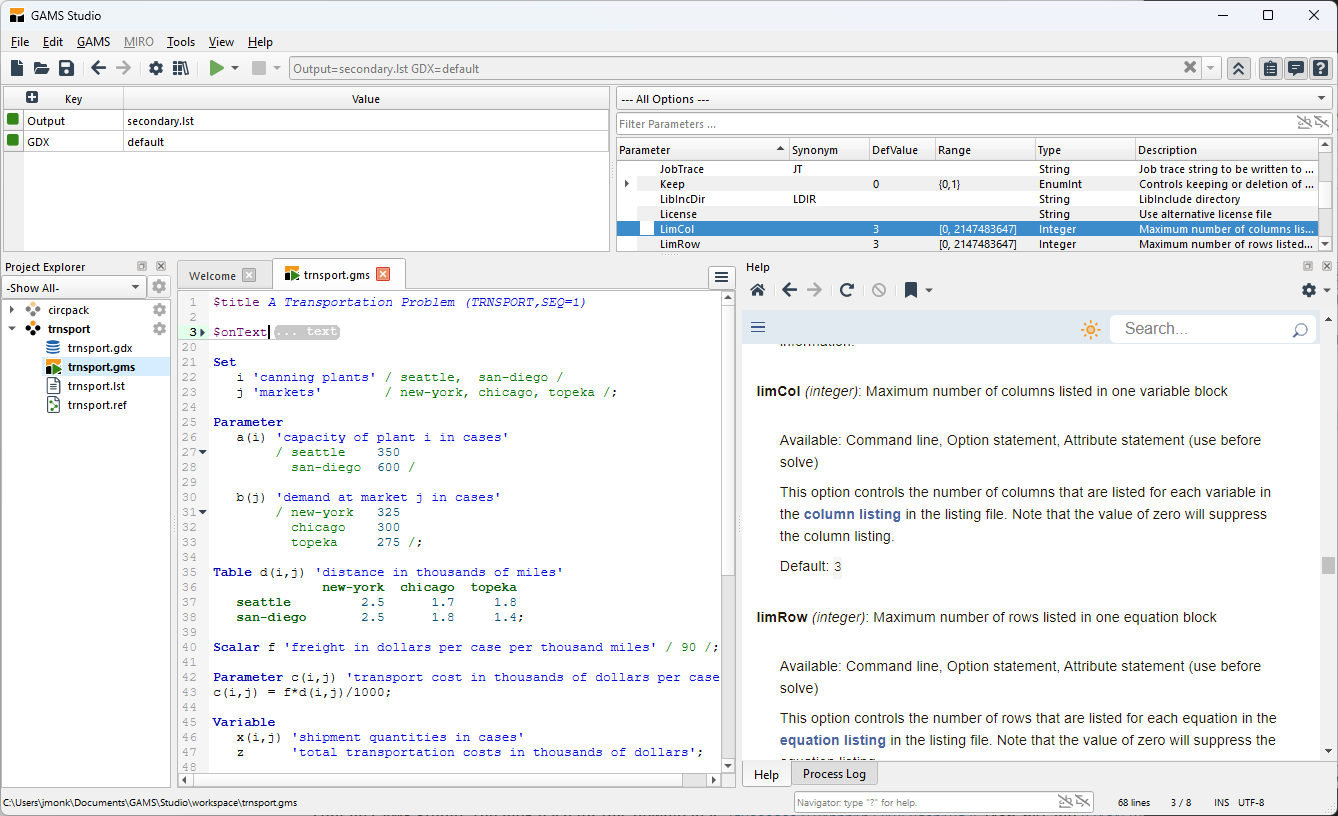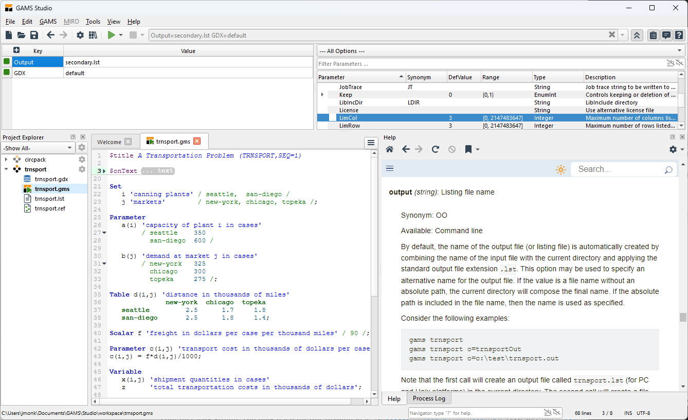 GAMS Studio is a completely new integrated development environment for GAMS, which is available for Windows, macOS, and Linux. It is based on C++ and Qt.