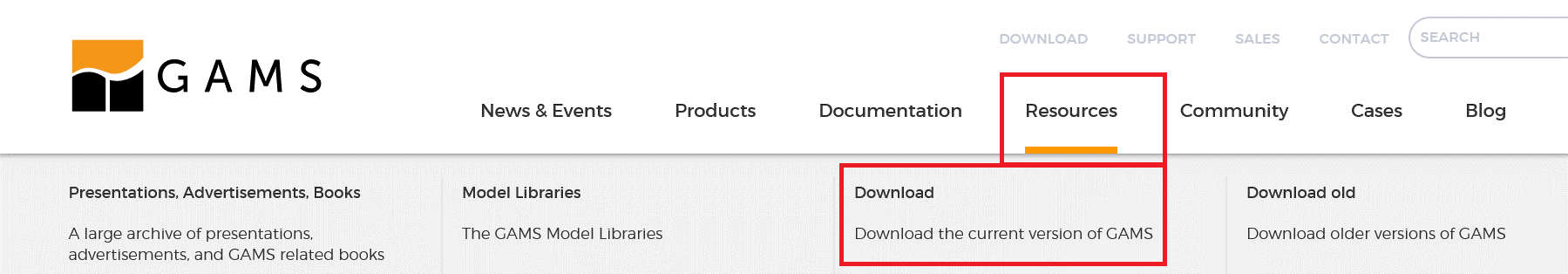 - Download the GAMS installation file from www.gams.com under Resources and Download