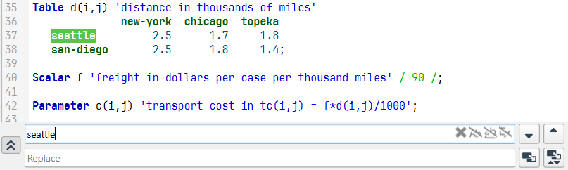 GAMS Studio now has a quick find option that is available with Ctrl+F in all text views. It uses F3 / Shift + F3 to find next / previous. It is bound to the current tab and changes its focus when switching to another tab. With Ctrl+R it additionally opens the replace section when the current editor isn't readonly.