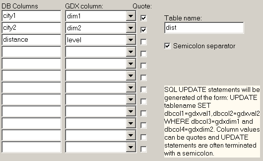 The text file export facility (File|Export|Text File) will write a GAMS identifier to a standard ASCII text file. Such a text file can look like: