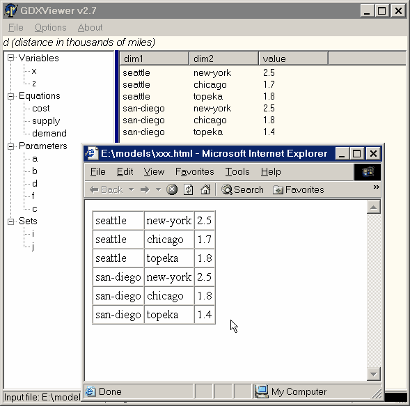 Note: there are alternative tools to view GDX files. GAMS Studio has a built-in GDX file viewer (use File|Open) and there is a command line utility called GDXDUMP.