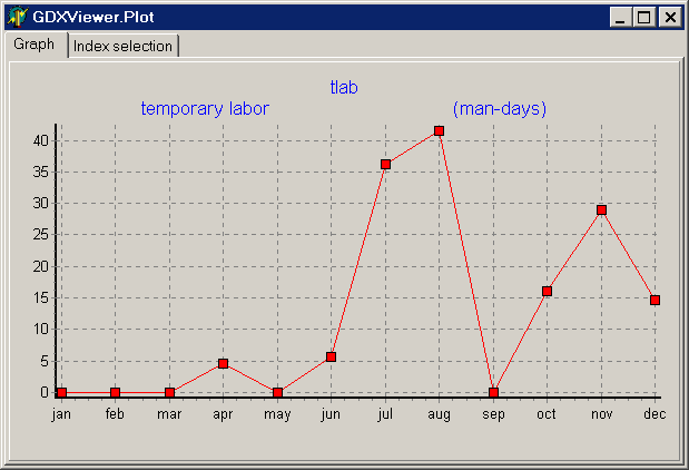 GDXVIEWER has a built-in facility to quickly plot data. It includes LINE, BAR and PIE charts, examples are shown below. The plots can be made through the menu File|Plot.