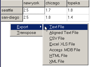 Other options that involve the format of the CSV file being written are: Options|Configuration|Export and Options|Configuration|Special Values. Exporting to Excel is only available if you have Microsoft Excel installed on your machine.