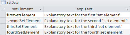 If we write to a GDX file, use this option to specify the name of a set to be used inside the GDX file. The last column specified within the select clause in the SQL statement will be used as explanatory text. This option is demonstrated in Example 5 - Reading Sets with Explanatory Text for instance.
