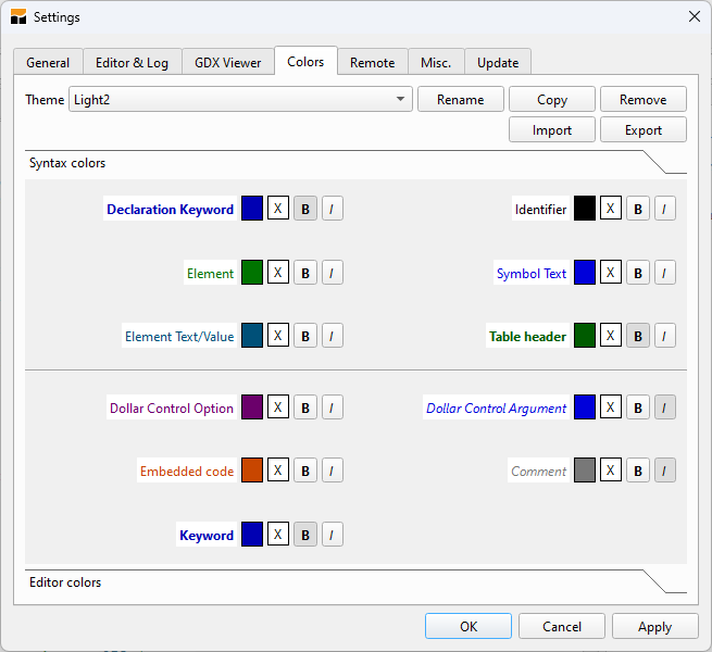 | - Set default options for the IDE only | - Interactive editor for the GAMS User Configuration |