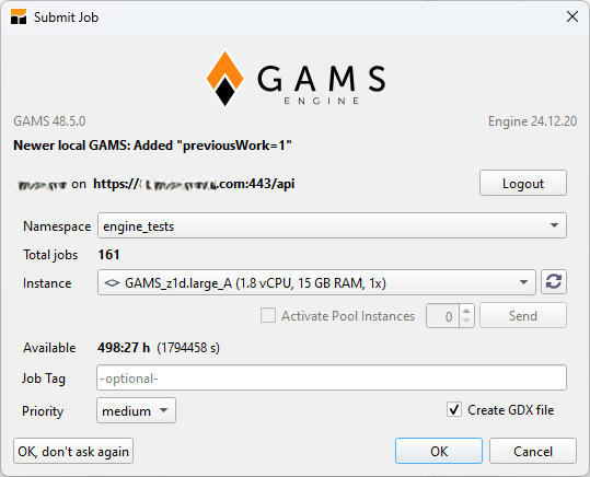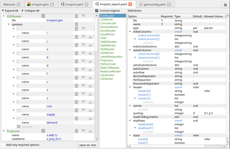 | - Use alternative license | - Interactive editor for GAMS Connect |