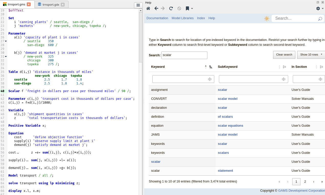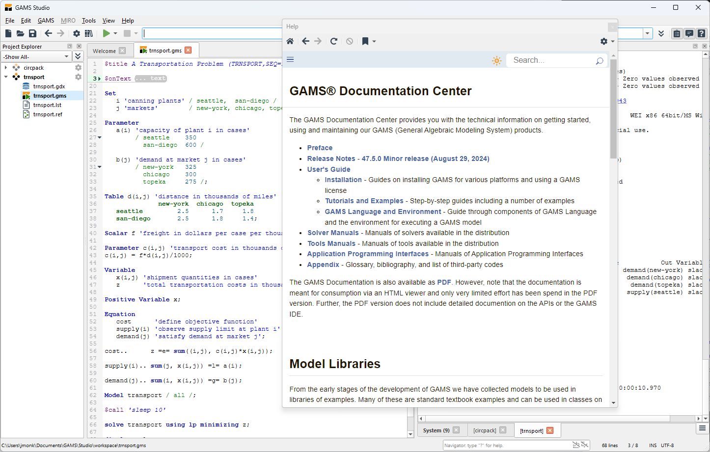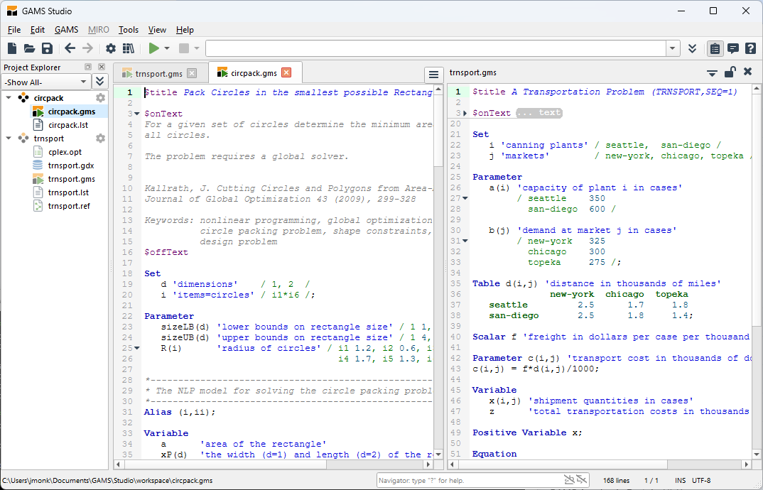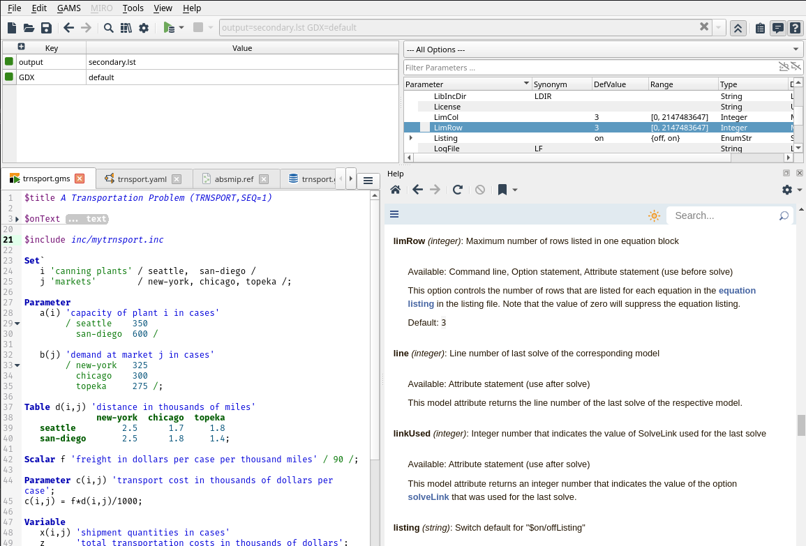 GAMS Studio is a completely new integrated development environment for GAMS, which is available for Windows, macOS, and Linux. It is based on C++ and Qt.