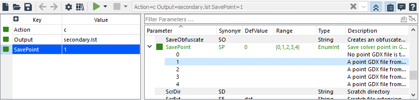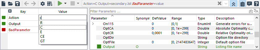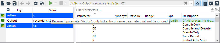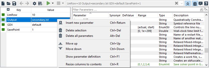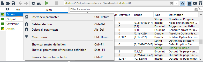 | - Use different GAMS versions | - Interactive editor of GAMS command line parameters |