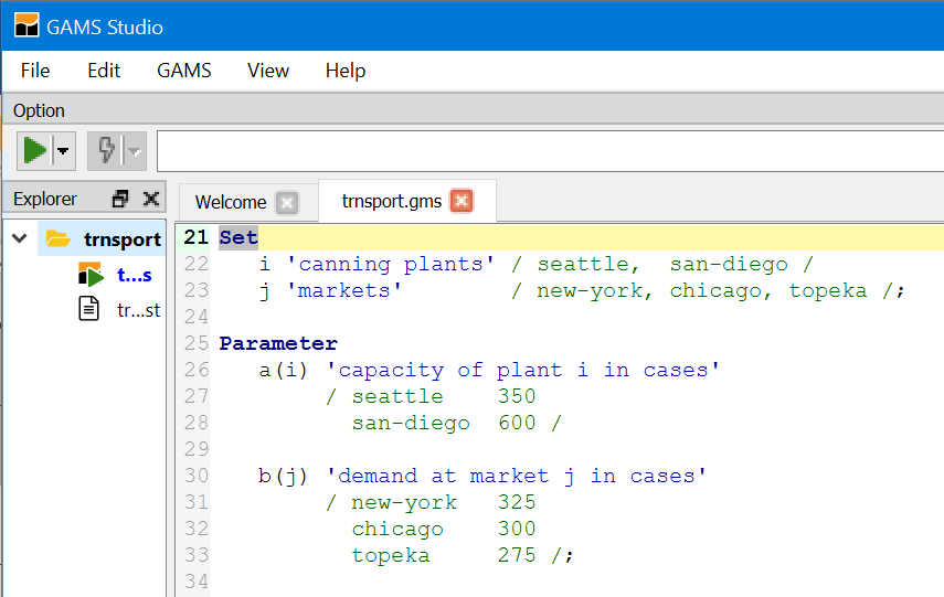 When using model library trnsport.gms should now appear as part of your STUDIO screen.