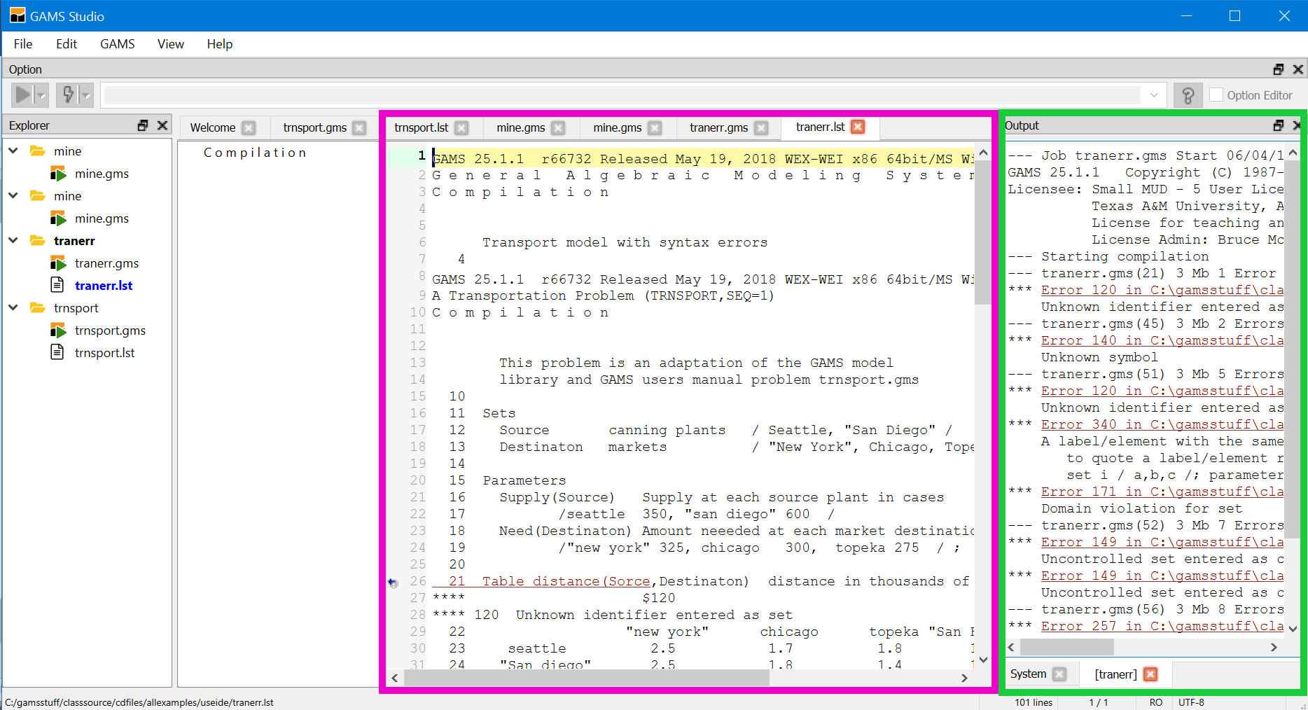 This tutorial on using GAMS Studio was written initially by and is distributed by courtesy of Bruce A. McCarl 1). Bruce has extensive experience with GAMS, both as a modeler and an educator, and many GAMS users know, use, and benefit from his work. This tutorial presents a guided tour to the usage of GAMS Studio and on some items it reflects Bruce's personal view and preferences.