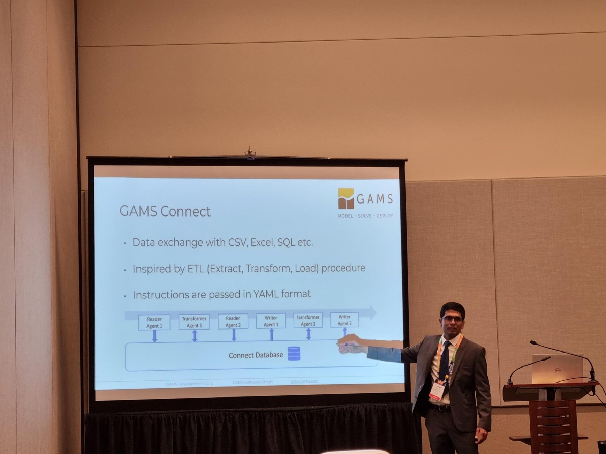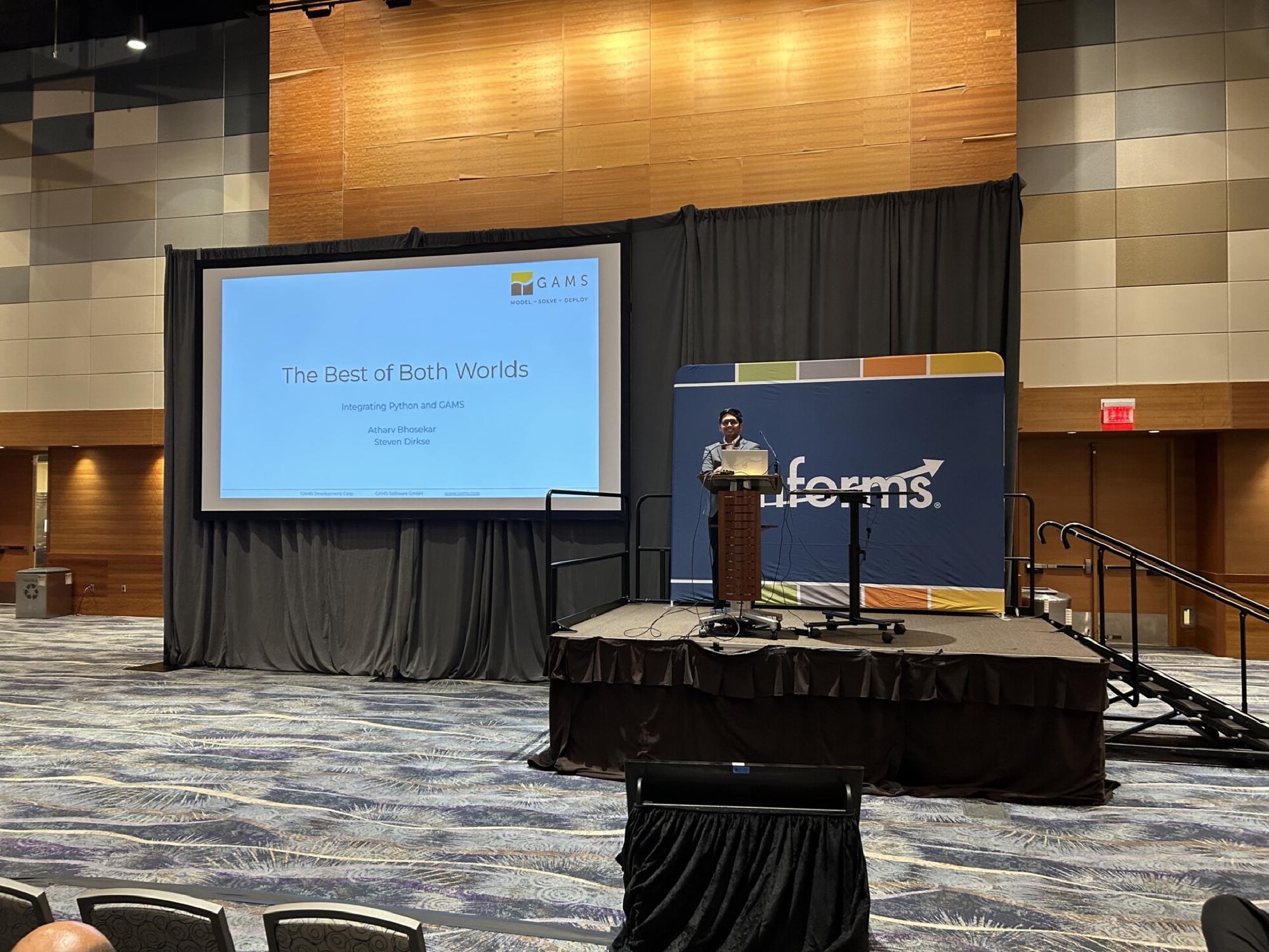 The INFORMS Annual Meeting 2023 was held Phoenix and we’ve had an eventful weekend at our booth. Our workshop, presented by Atharv Bhosekar and Steven Dirkse, proved to be a success. We were delighted to see a diverse audience, ranging from newcomers to the GAMS framework to industry veterans. Their presence and engagement led to a productive session filled with intriguing questions. We appreciated the audience’s curiosity and professionalism.