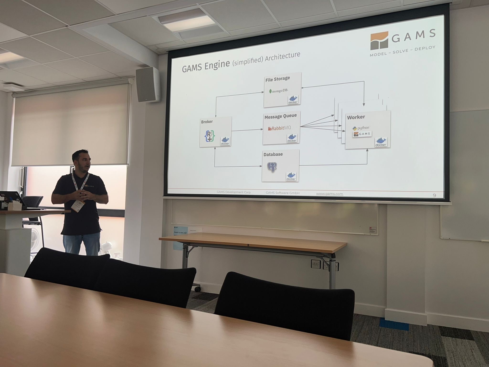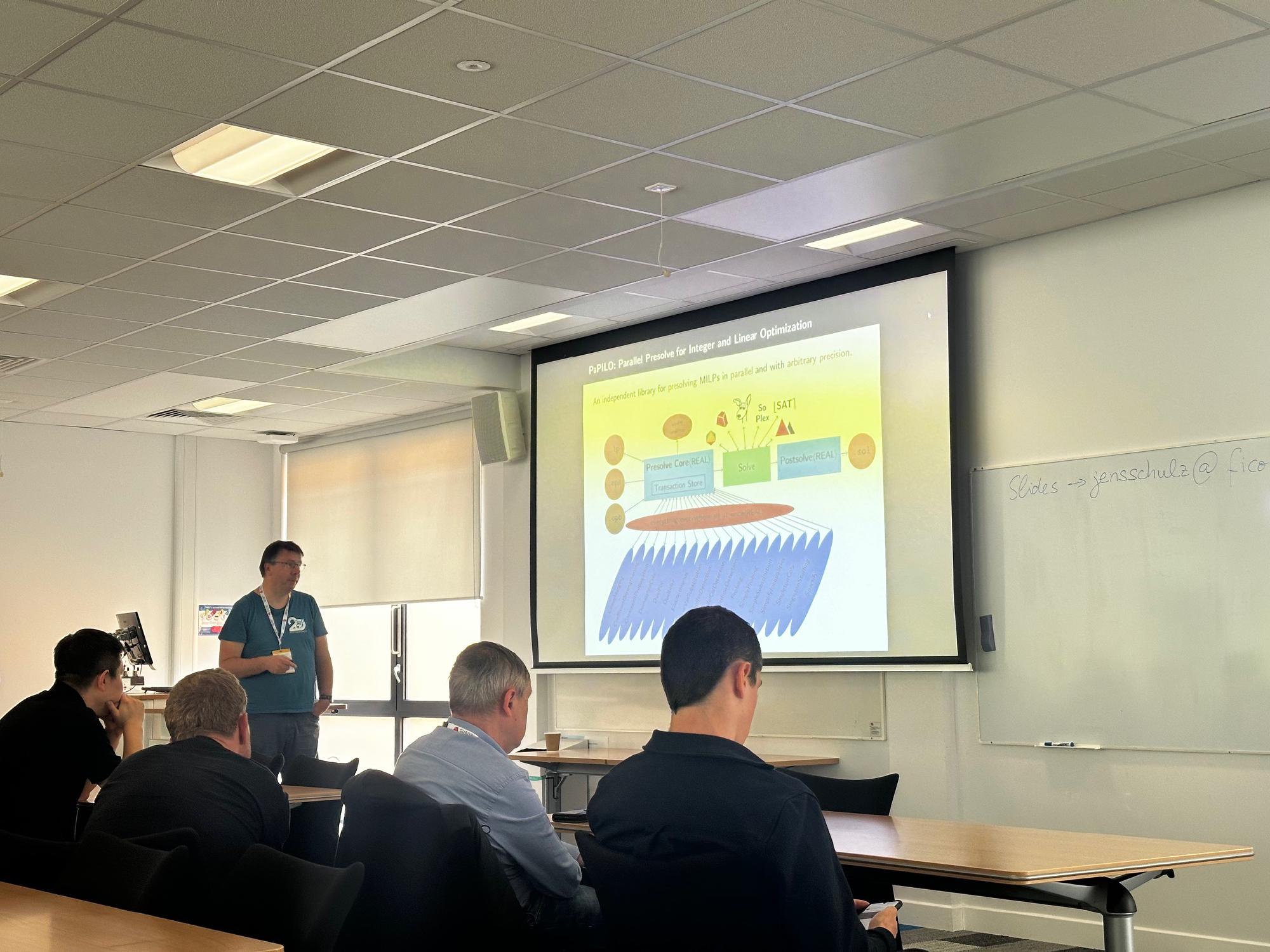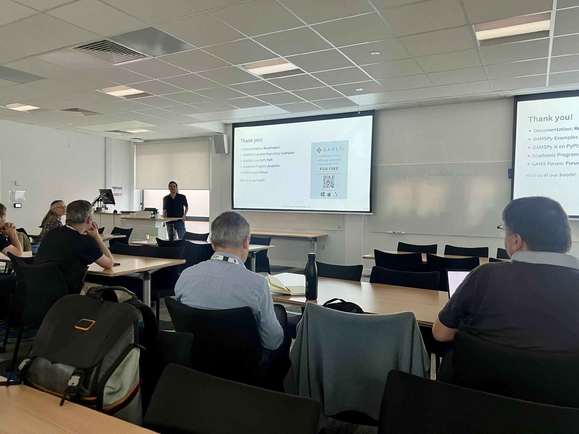 Each GAMS team member gave a talk during the conference, all of which were well received. In fact, GAMS even made its way into other presentations — highlighting the growing visibility of our tools within the OR community.