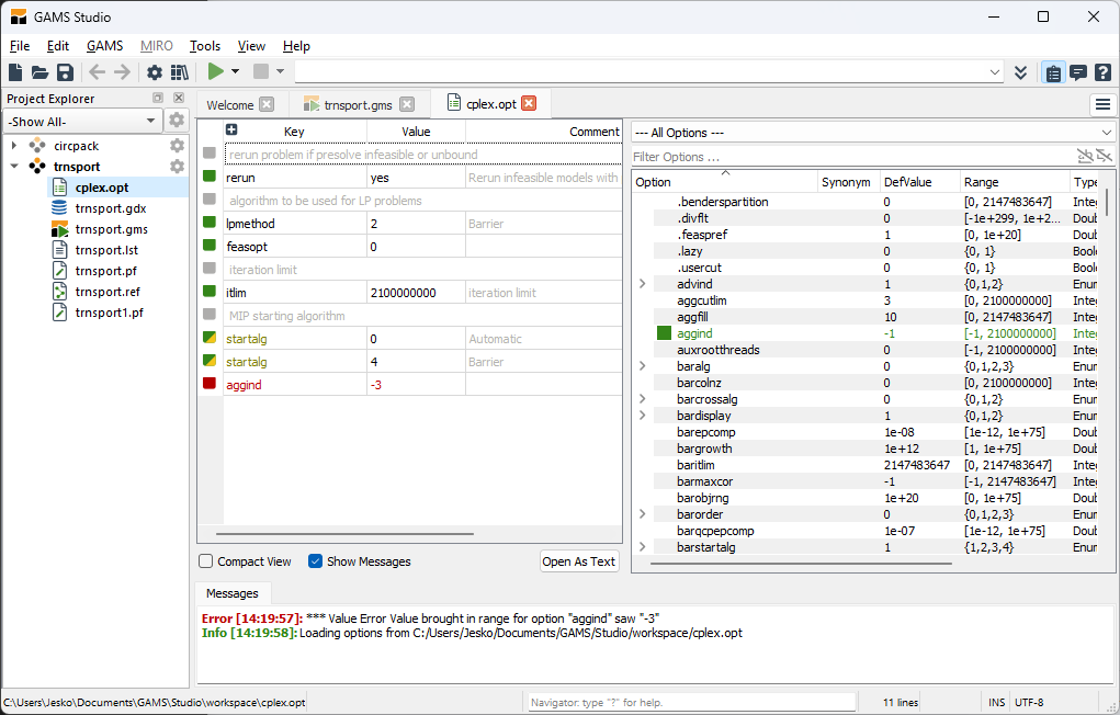 This approach ensures that models are executed within their own directories, which can be more intuitive. However, if your models were structured to rely on the "GAMSIDE way", you can still adjust the working directory for a project within the Project Options.