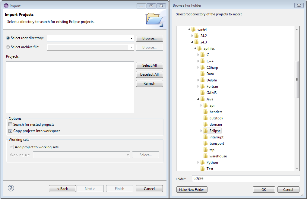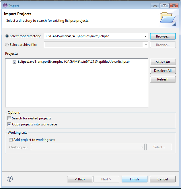 For an Eclipse user, see Import an Eclipse Java Project from the GAMS system directory.