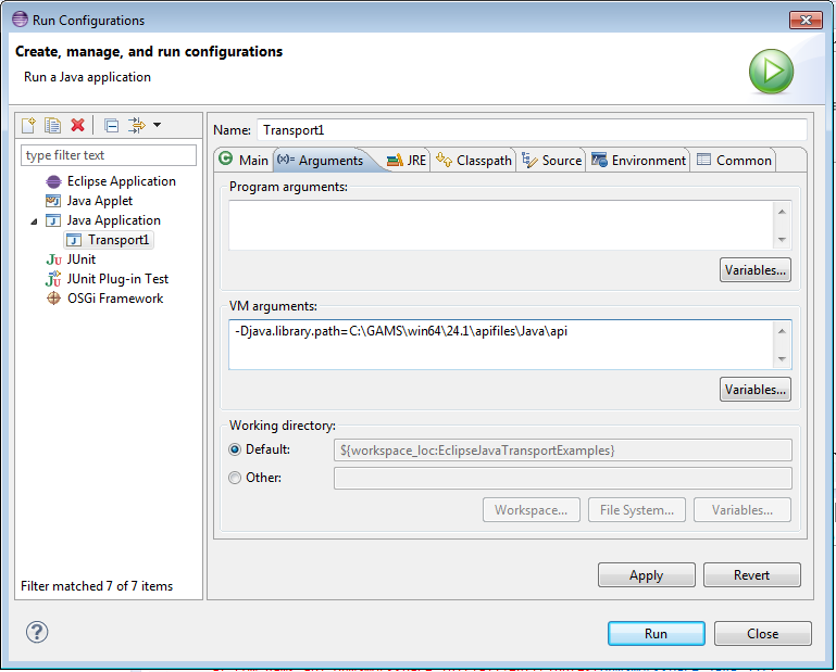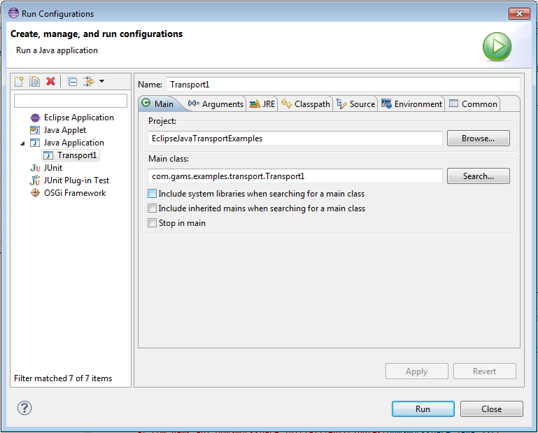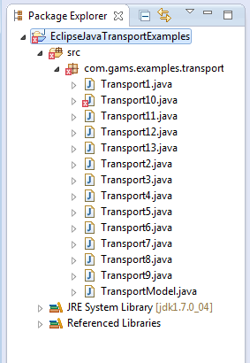 At first we have to add an additional jar file to the [CLASSESPATH] since we use the Java Excel API which can be downloaded from jexcelapi. We unzipped the Java Excel API folder in C:\tools. To compile and run on a Windows platform from the command line go to C:\GAMS\[gams-version]\apifiles\Java\transport and use: