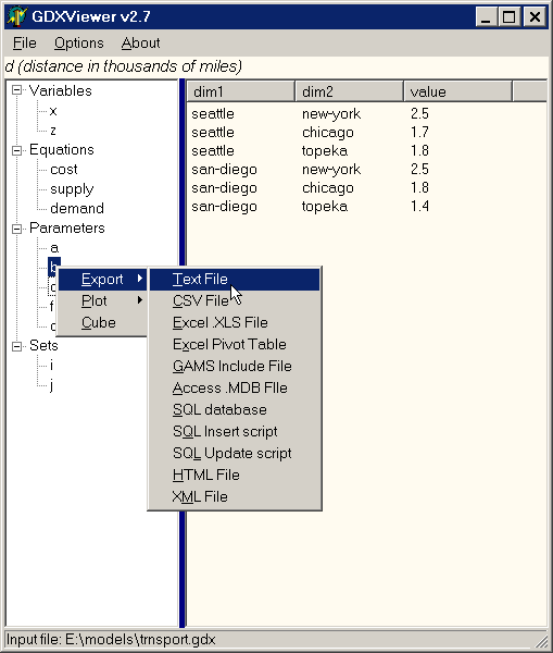 The GDX file can be loaded interactively using the File|Open menu, or it can be launched from the command line: