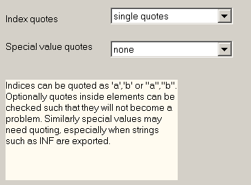 Other options that involve the format of the CSV file being written are: Options|Configuration|Export and Options|Configuration|Special Values.
