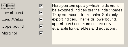 The text file export facility (File|Export|Text File) will write a GAMS identifier to a standard ASCII text file. Such a text file can look like: