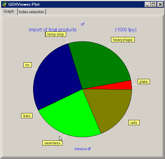 In this case we want to plot a pie graph of vf(*,’mexico-df’) which can be specified in the index-selection tab: