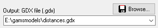 This option specifies the name of the output file. The format of the output file will be a GAMS GDX file. Make sure the directory is writable. UNC names can be used. If the GDX file already exists it will be overwritten - it is not possible to append to a GDX file. An output file must be specified for batch operation: i.e. either
