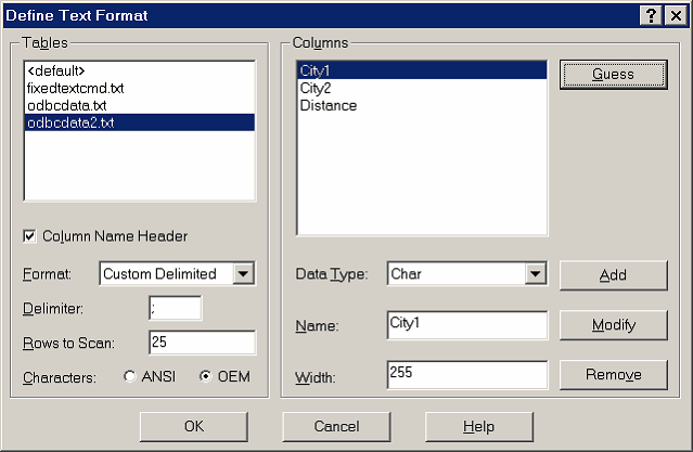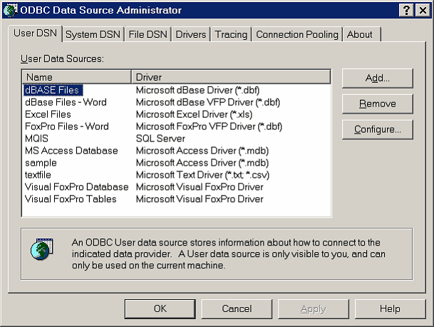C=DSN=sample O=c:\My Documents\data.inc Q=SELECT * FROM mytable