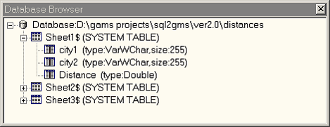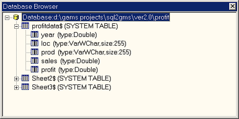 If you need to read data from an MS Access database or MS Excel spreadsheet, the accompanying tools MDB2GMS or XLS2GMS resp. GDXXRW may be more appropriate. In some cases it may be more useful to use SQL2GMS to read from Access and Excel data sources.