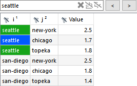 To find relevant entries in tables and tree views Studio provides a special line edit containing up to four buttons aligned to the right: