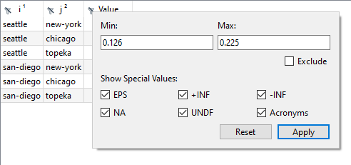 - Exact Match - when active, the filter accepts only rows with one cell matching exactly the term regarding wildcard or regular expression setting.
