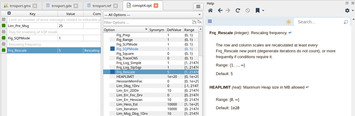 | - Solver selection menus | - Integration of GAMS MIRO |