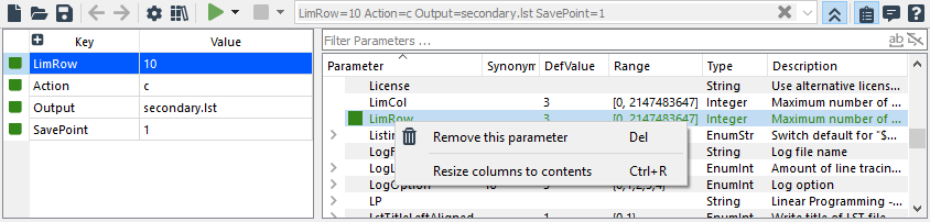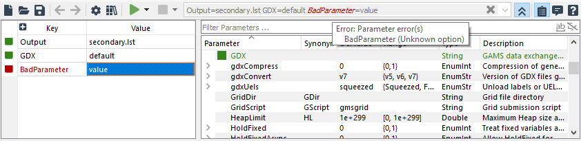 | - Use different GAMS versions | - Interactive editor of GAMS command line parameters |