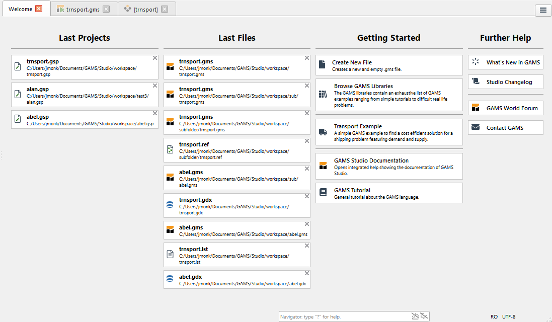 GAMS Studio is a completely new integrated development environment for GAMS, which is available for Windows, macOS, and Linux. It is based on C++ and Qt.