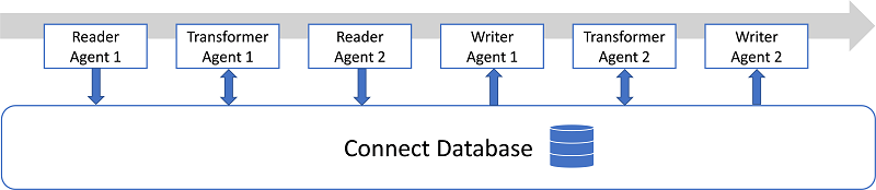 The Connect database processes instructions in two phases: The initialization phase and the execution phase. During the initialization phase, the Connect database sequentially instantiates the specified agents and validates the agent instructions, i.e. validates the specified agent options. If all agents passed the initialization phase, the Connect database continues with the execution phase. In this step, the agent instructions are executed. If an error occurs during initialization or execution of agent instructions, subsequent agents are not further processed and the Connect database immediately returns the error.