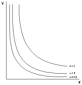 Figure 2 illustrates how it is possible to use a utility function to generate a diagram with the associated indifference curves. This figure illustrates Cobb-Douglas well-behaved preferences which are commonly employed in applied work.
