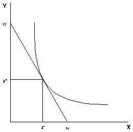 Within the framework of our theory, the answer is straightforward – the consumer will choose the one combination of x and y from the set of affordable bundles which maximizes her utility. This combination of x and y will be at the point where the indifference curve is tangent the budget line. This point is called the optimal choice. We see this illustrated in Figure 4.