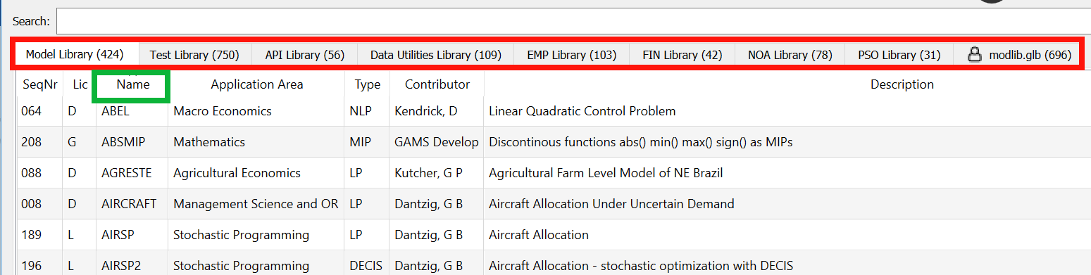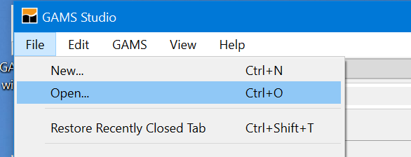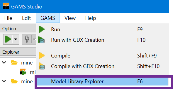Open the GAMS model library explorer under the GAMS tab or press F6 (this is the simplest for first time users and the one we will use)