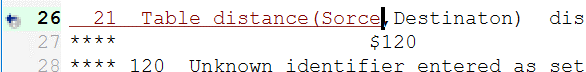 | Non-bolded black line | Control click on this takes you to LST file. Double-click on error message takes you to spot in LST file. |