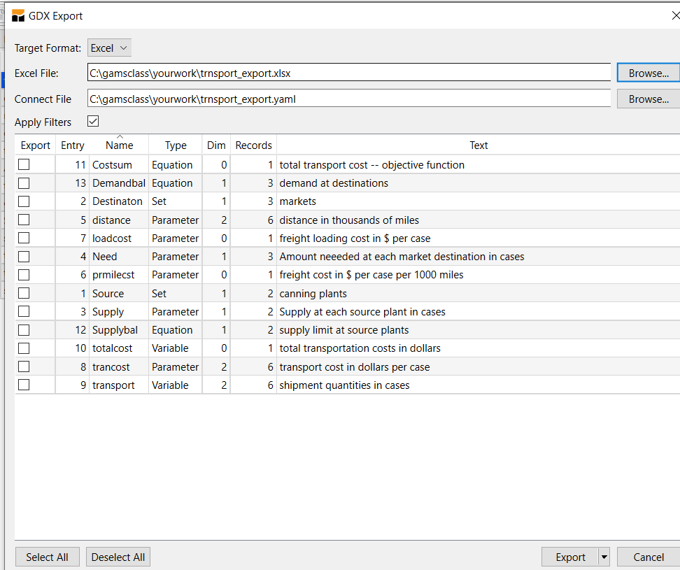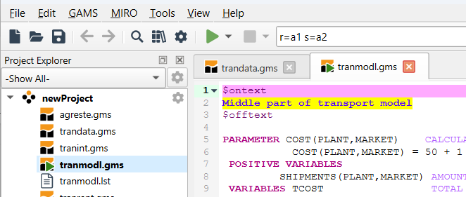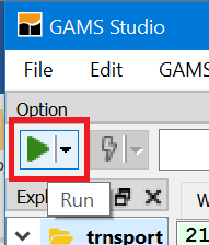 When using model library trnsport.gms should now appear as part of your STUDIO screen.