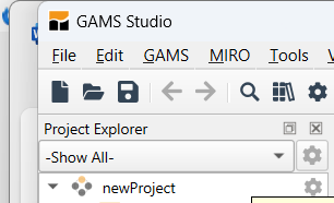 What is a project? GAMS STUDIO employs a "Project" file for two purposes. First, the project location determines where all saved files are placed (to place files elsewhere use the save as dialogue) and where GAMS looks for files when executing. Second the project saves file names and program options associated with the effort. I recommend that you define a new project every time you wish to change the file storage directory.