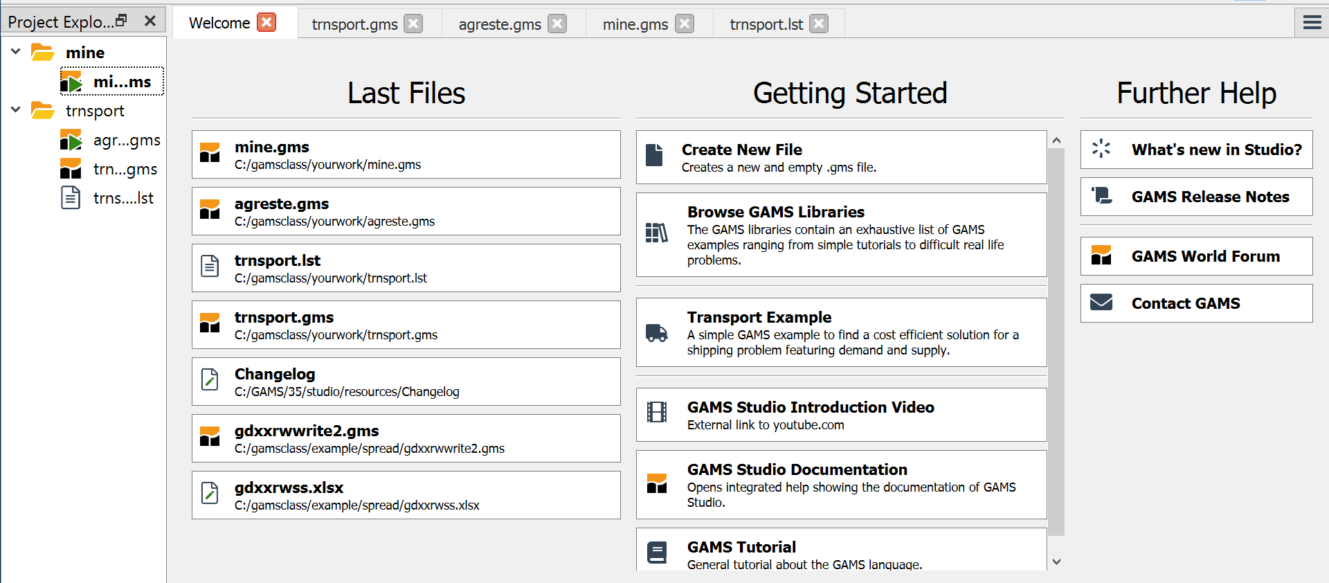 This tutorial on using GAMS Studio was written initially by and is distributed by courtesy of Bruce A. McCarl 1). Bruce has extensive experience with GAMS, both as a modeler and an educator, and many GAMS users know, use, and benefit from his work. This tutorial presents a guided tour to the usage of GAMS Studio and on some items it reflects Bruce's personal view and preferences.
