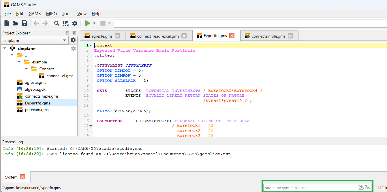 This tutorial on using GAMS Studio was written initially by and is distributed by courtesy of Bruce A. McCarl 1). Bruce has extensive experience with GAMS, both as a modeler and an educator, and many GAMS users know, use, and benefit from his work. This tutorial presents a guided tour to the usage of GAMS Studio and on some items it reflects Bruce's personal view and preferences.