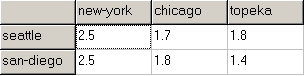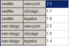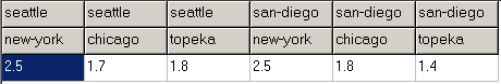 seattle new-york 2.5 seattle chicago 1.7 seattle topeka 1.8 san-diego new-york 2.5 san-diego chicago 1.8 san-diego topeka 1.4