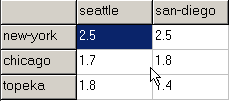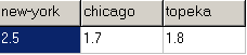 new-york chicago topeka seattle 2.5 1.7 1.8 san-diego 2.5 1.8 1.4