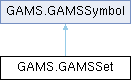 This is the representation of a set symbol in GAMS. It exists in a GAMSDatabase and contains GAMSSetRecords which one can iterate through.