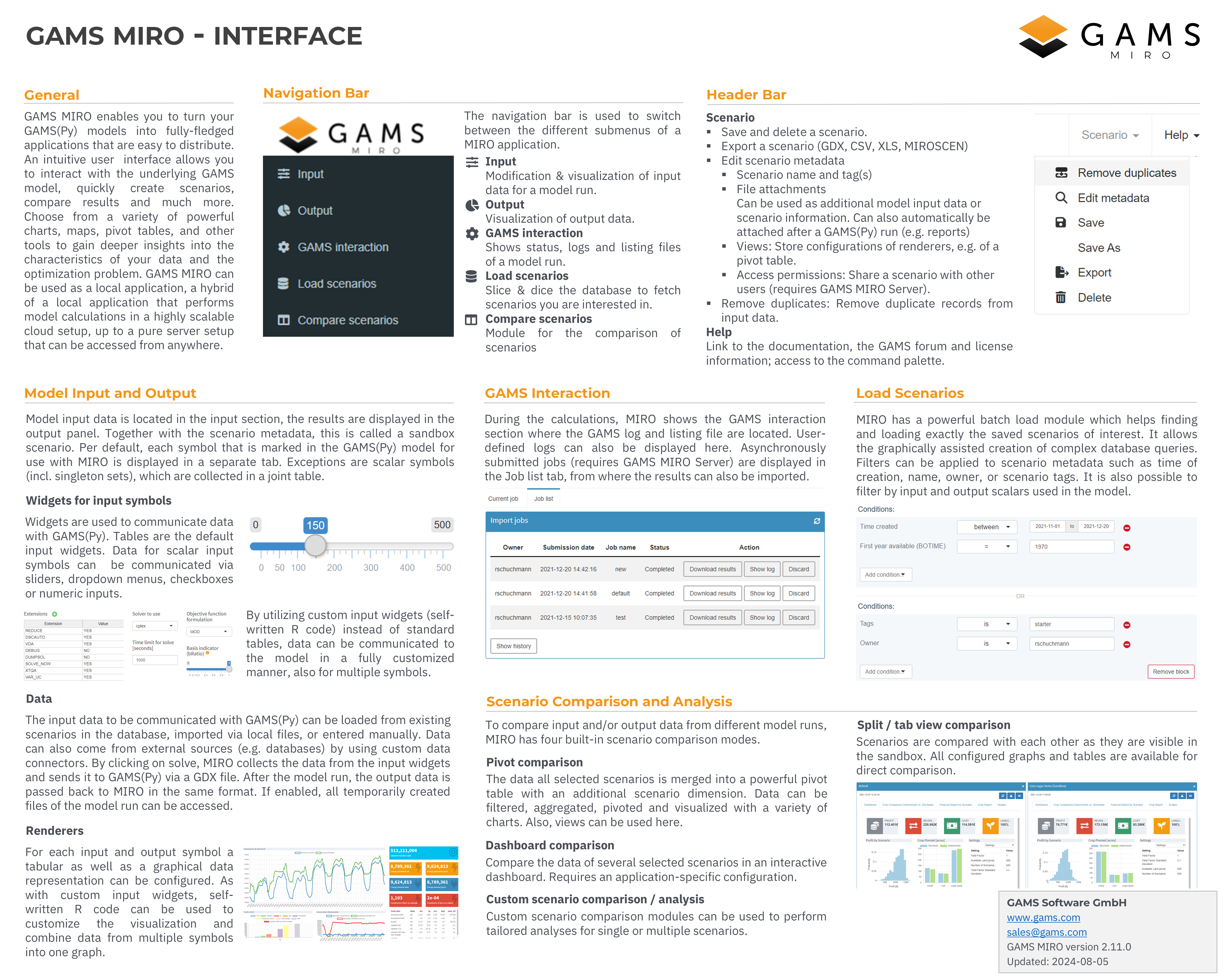 Lazy to read the documentation or just want a compact summary of the most important features of GAMS MIRO?
