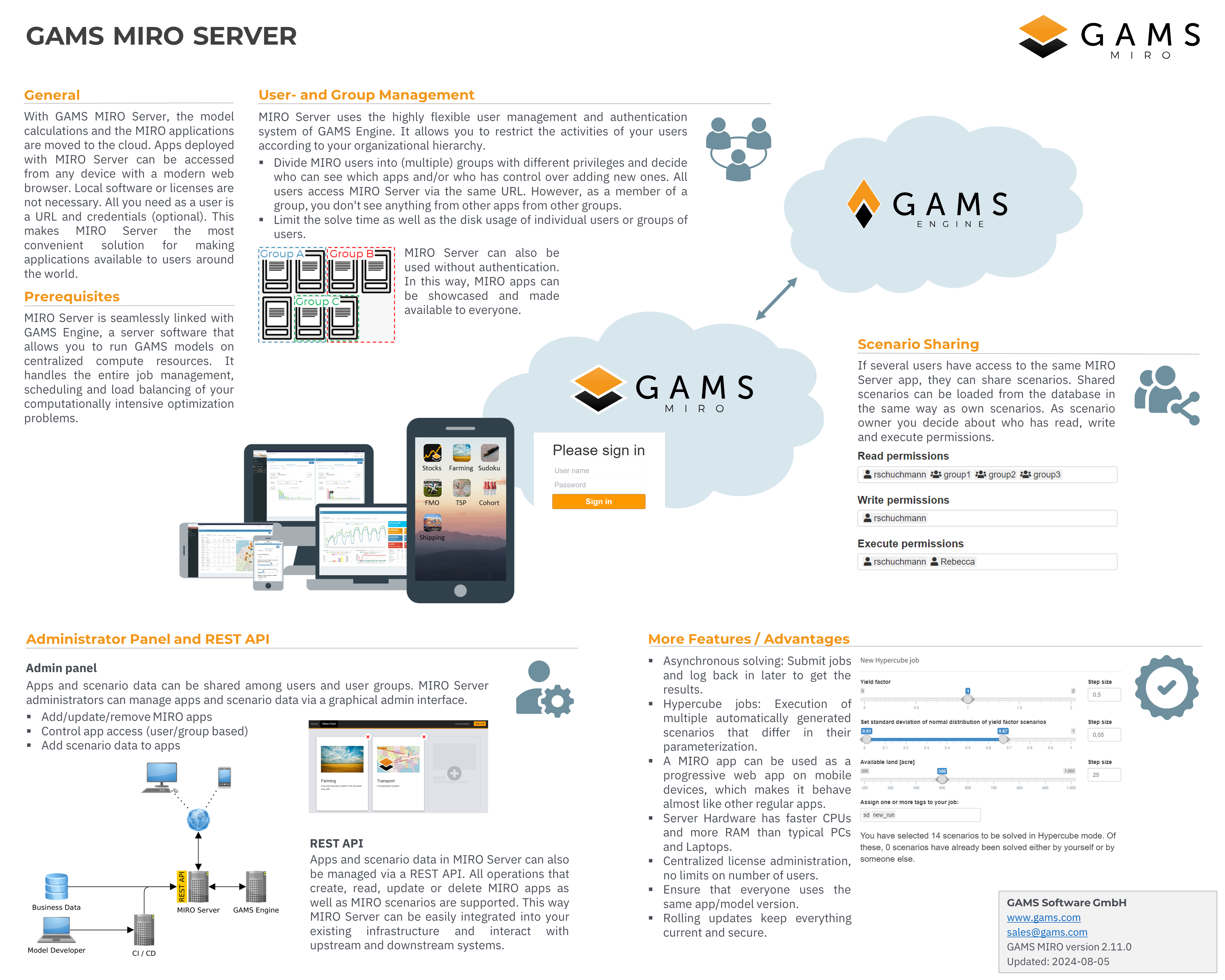 The term GAMS MIRO describes the entire deployment system for GAMS models. It includes several elements: user interface, connector, library, Desktop, Server, ...