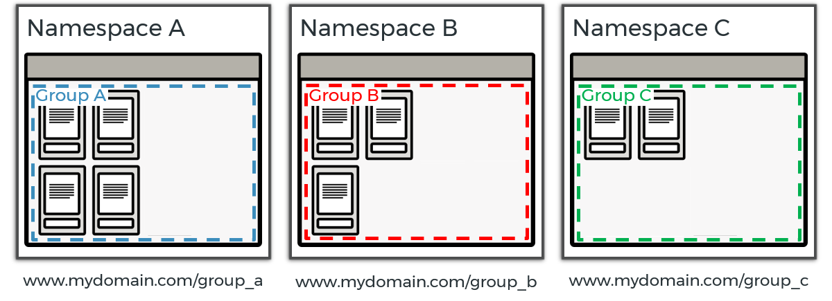 All users access MIRO Server via the same URL. However, as a member of a group, you don't see anything from other apps from other groups.
