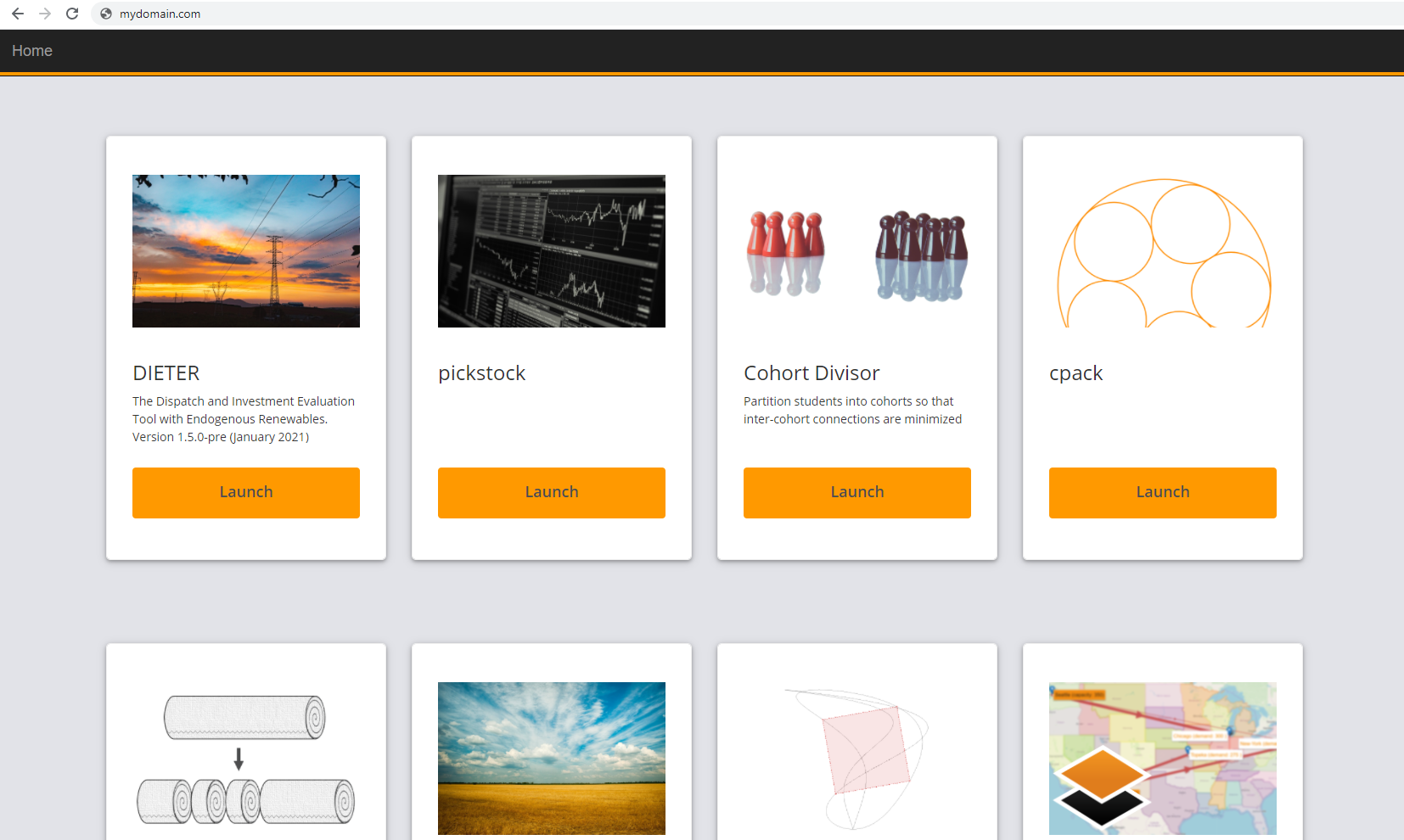 The landing page of MIRO Server shows the MIRO Server library. It lists all apps that a user has access to and is very similar to the app library of MIRO Desktop. Each app is displayed in a separate tile and can be launched from there:
