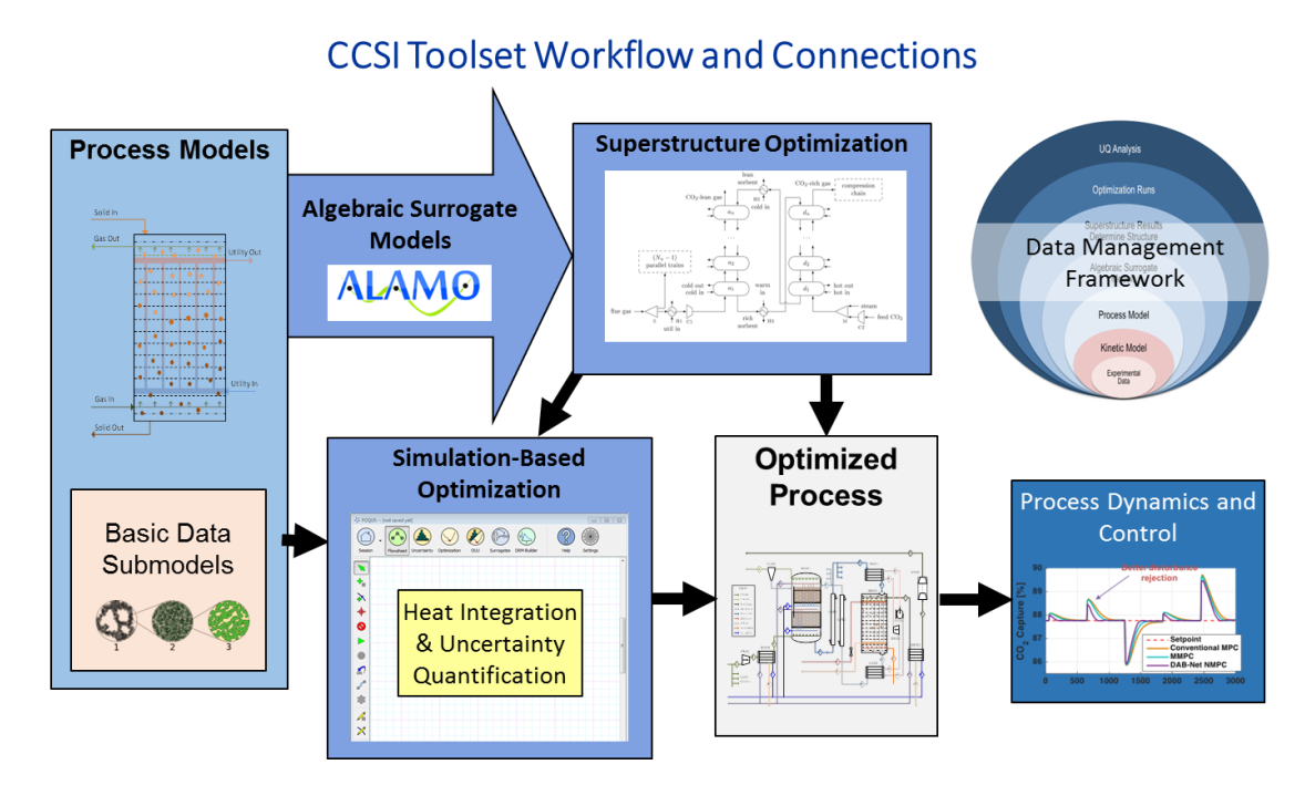- Framework for Optimization, Quantification of Uncertainty and Surrogates (FOQUS), which enables simulation-based process optimization, heat integration (GAMS), uncertainty quantification, generating algebraic surrogate models and building dynamic reduced models.